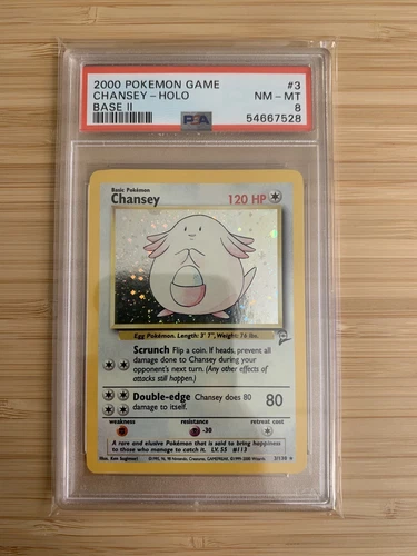 Pokémon Chansey Holo Swirl Base II 3/130 PSA 8 (54667528)