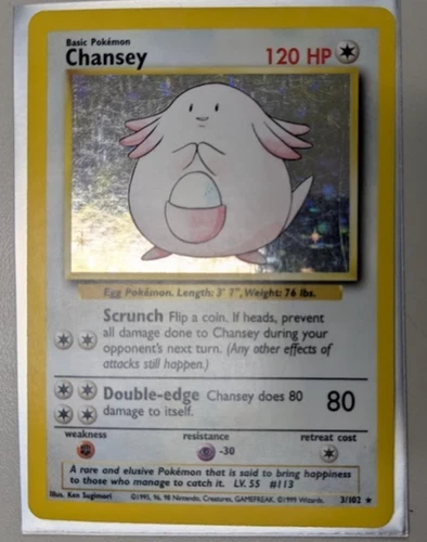 Chansey 3/102 Holo Rare Base Set Pokemon Card TCG Vintage 1999