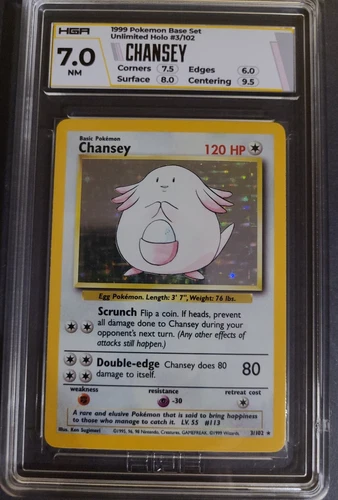1999 Pokemon CHANSEY 3/102 - Rare Unlimited Holo - Base Set - HGA 7.0 w/ 9.5