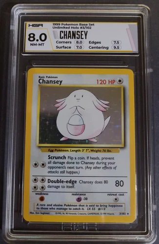 1999 Pokemon CHANSEY 3/102 - Rare Unlimited Holo - Base Set - HGA 8.0 w/ 9.5
