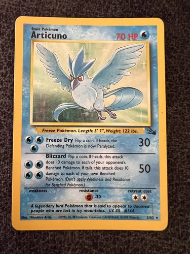 Articuno 2/62 Pokemon Fossil Unlimited Holo Rare WOTC 1999 Pokémon Card LP