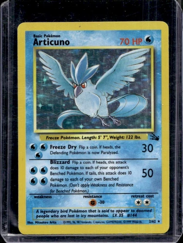 Articuno - 2/62 Pokemon Fossil Unlimited Holo Rare - WOTC 1999 Pokémon Card MP