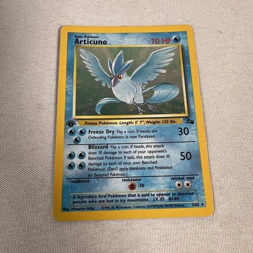 Articuno 2/62 Pokemon Fossil Unlimited Holo Rare - WOTC 1999 Pokemon Card DMG
