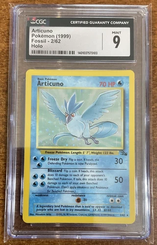 1999 Pokemon Fossil 2/62 Articuno Holo CGC 9 - Free Shipping!