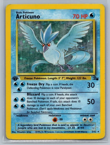 Articuno 2/62 1st Edition - Fossil - LP Holo - Pokemon Card