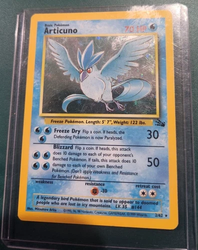 Pokémon TCG Articuno Fossil 2/62 Holo Unlimited Holo Rare 1999 Vintage Rare