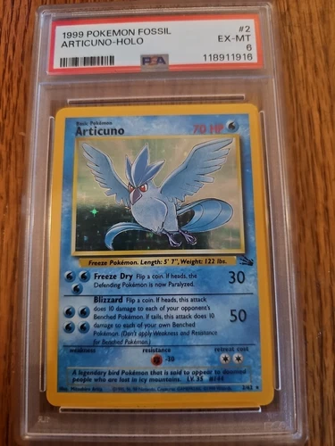 1999 Articuno Holo Rare Fossil Pokémon TCG PSA 6, #2/62 Ex-NM