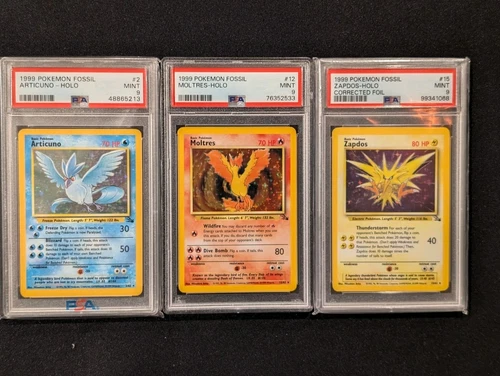 PSA 9 Articuno 2/62 Moltres 12/62 + Zapdos 15/62 Fossil Cards