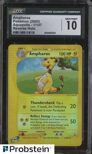 2003 Pokemon Aquapolis #1/147 Ampharos Reverse Holo CGC 10 GEM MINT