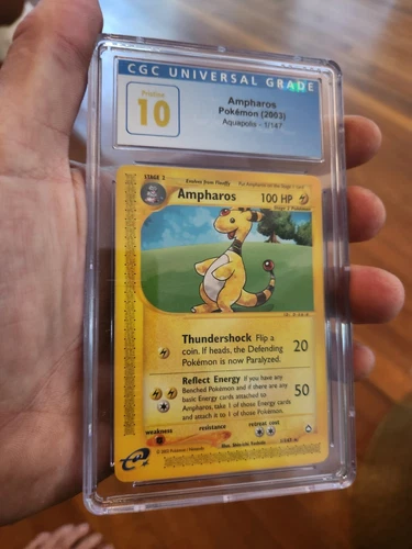 (POP 3) CGC 10 PRISTINE Ampharos 1/147 Pokemon Aquapolis 2003 WOTC Ereader Card