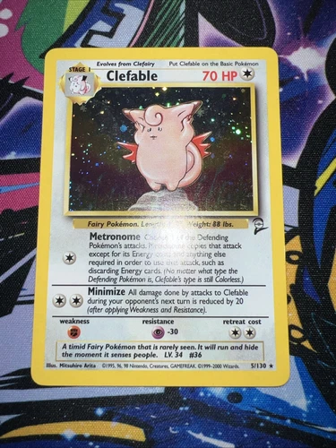 Old Pokémon TCG Clefable - Base Set 2 Holo Rare 5/130 WOTC - Near Mint