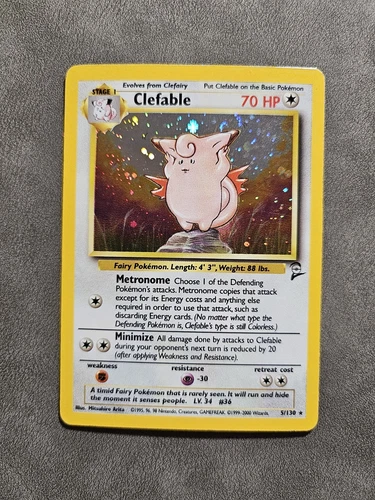 Pokemon Card Clefable 5/130 Holo Base Set 2 WOTC Holo Rare Played 2
