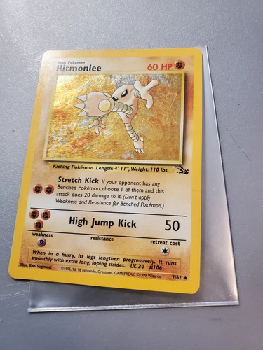 Damaged, English Pokemon Holo Hitmonlee - 7/62 - Holo Rare - Unlimited Edition F