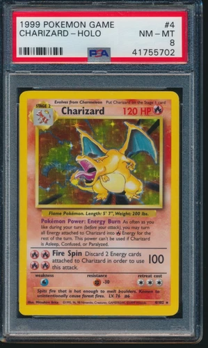 PSA 8 CHARIZARD 1999 Pokemon Base Unlimited #4/102 Holo Non-Shadowless NM-MINT