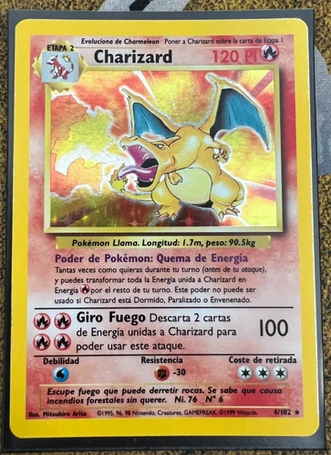Pokemon SPANISH Charizard 4/102 Base Set Unlimited Holofoil Modearely Played #2