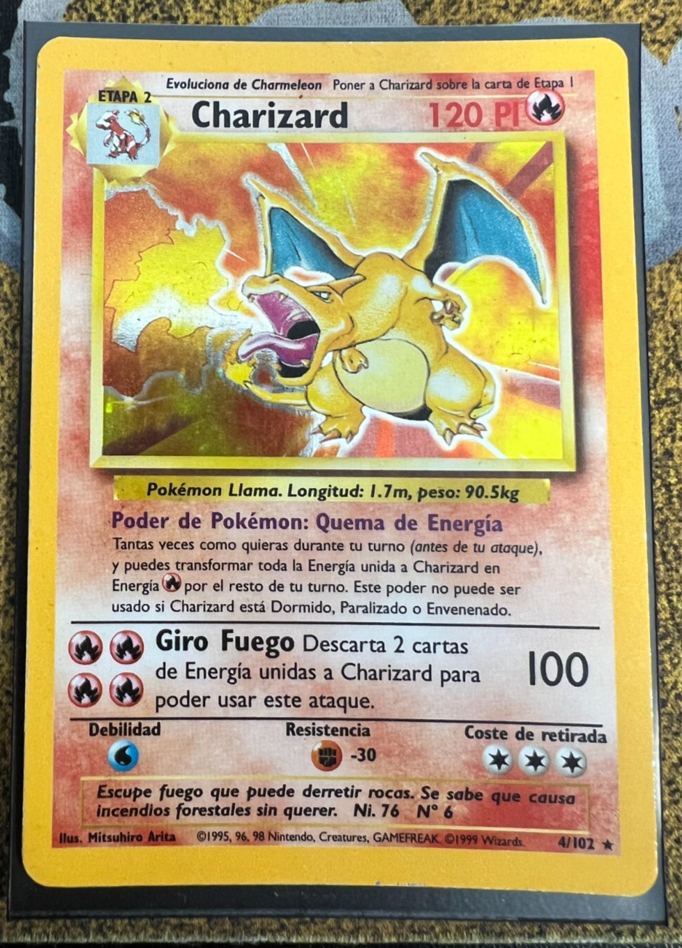 Pokemon SPANISH Charizard 4/102 Base Set Unlimited Holofoil Modearely Played #1