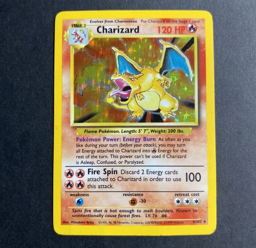 Pokemon TCG Charizard Base Set Holo Rare Card 4/102 1999 (Don’t Know shadow)