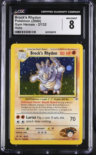 Pokemon Gym Heroes 2/132 Brock's Rhydon 2000 Fighting Holo Rare CGC 8 NM/MINT
