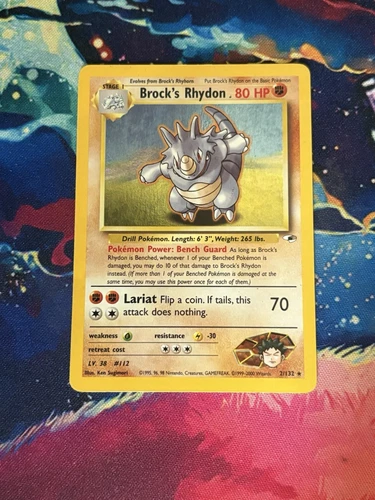 Pokémon Brock's Rhydon 2/132 Holo Rare - 2000 Unlimited Gym Heroes
