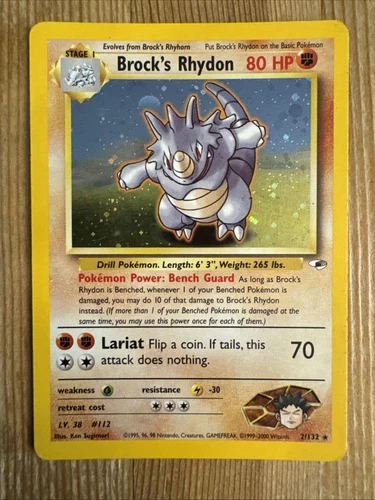 Pokemon Gym Heroes Brock's Rhydon 2/132 Holo Rare ('X' pattern)