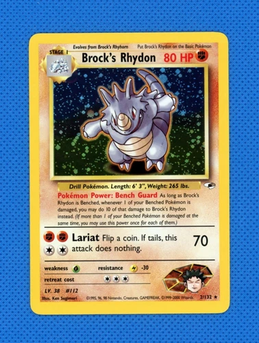 Brock's Rhydon 2/132 Unlimited Holo Rare WOTC Gym Heroes NM/LP Pokemon ?