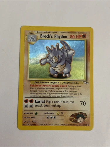 Pokémon Brock's Rhydon 2/132 Holo Rare - 2000 Unlimited Gym Heroes