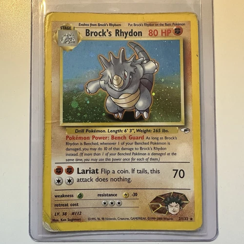 Pokémon TCG Brock's Rhydon Gym Heroes 2/132 Holo Unlimited Rare Vintage HP