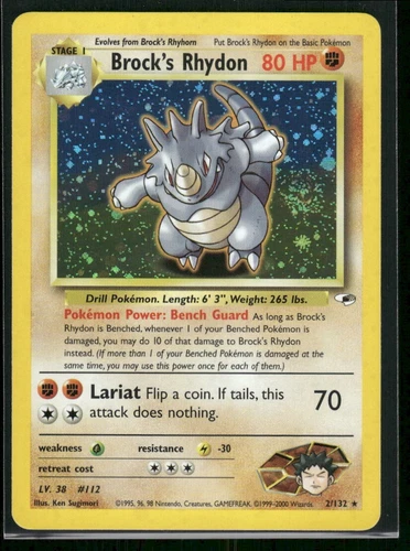 Pokémon TCG Brock's Rhydon Gym Heroes 2/132 Holo Unlimited Rare