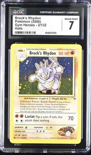 CGC 7 Brock's Rhydon 2000 Gym Heroes 2/132 Holo Pokemon Card psa