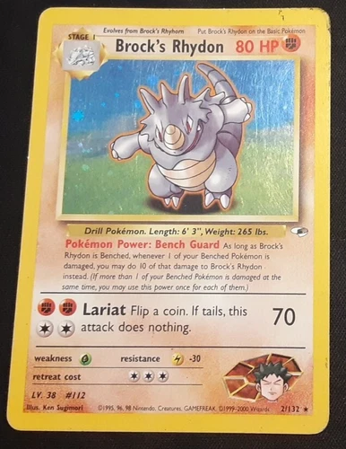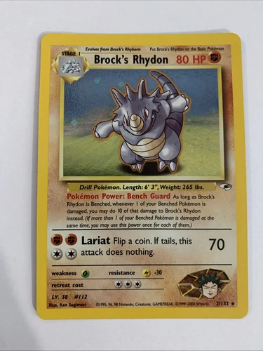 Pokémon Brock's Rhydon 2/132 Holo Rare - 2000 Unlimited Gym Heroes w/ swirl