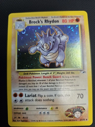 Pokémon TCG Brock's Rhydon Gym Heroes 2/132 Holo Rare WITH SWIRL HP.
