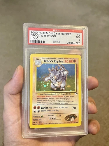 Pokemon Card 2000 Gym Heroes 2/132 BROCK'S RHYDON Holo Unlimited PSA 7 Near Mint