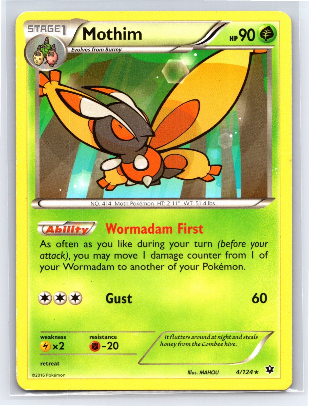 POKEMON Trading Card Stage 1 Mothim HP90 Wormadam First Gust 4/124 - 2016