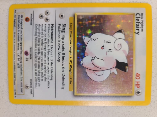 Pokemon Card "Clefairy" Holo, 5/102 Rare. FLASH SALE 6/3-6/5! $40 DISCOUNT!