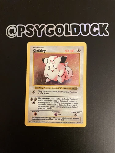 New ListingPokémon TCG Clefairy Base Set Holo Unlimited Rare Card 5/102 MP Condition