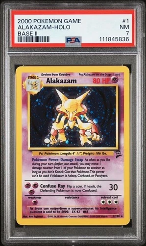 ?SWIRL? 2000 Pokemon Base Set 2 Alakazam Holo 1/130 PSA 7