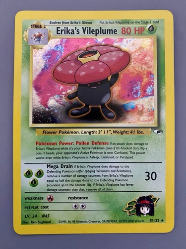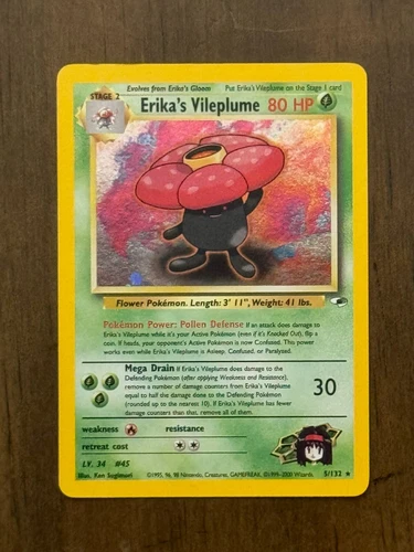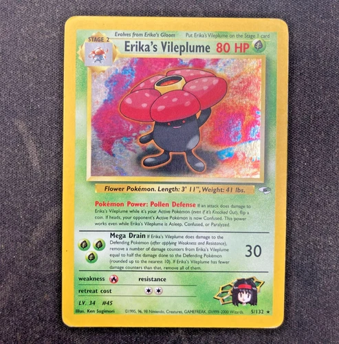 Pokemon Collectors Erika's Vileplume Holo Rare Gym Heroes 5/132 1995