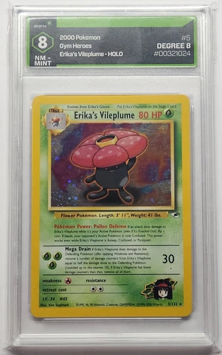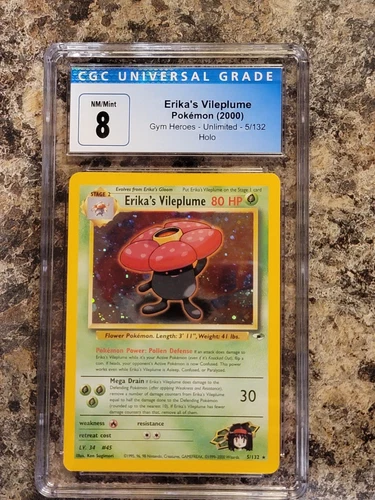 CGC 8 Erika's Vileplume Pokemon 2000 Gym Heroes Unlimited 5/132 HOLO Card PSA