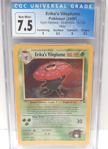 2000 Pokemon Gym Heroes Unlimited Erika's Vileplume Holo 5/132 CGC 7.5