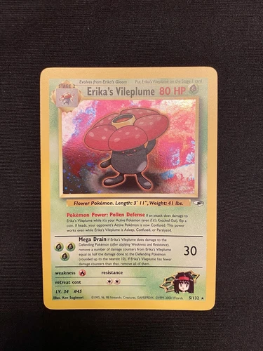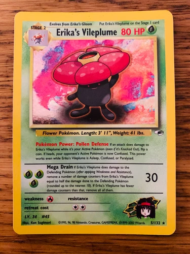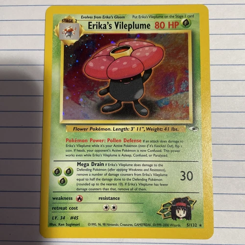 Erika’s Vileplume 5/132 Gym Heroes Pokemon TCG WOTC Holo Rare