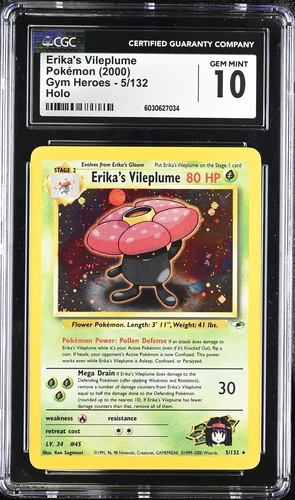 CGC 10 GEM MINT Erika's Vileplume 2000 Gym Heroes 5/132 Holo Pokemon Card psa