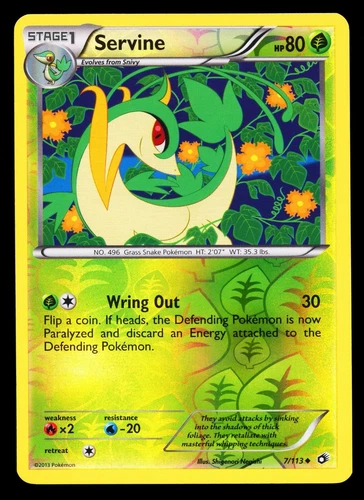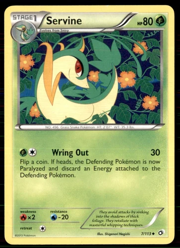 Servine Pokemon Card Reverse Holographic 7/113 Legendary Treasures Holo 2013 TCG