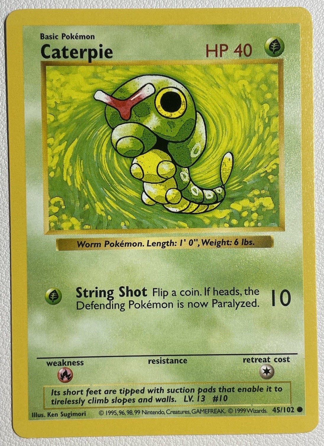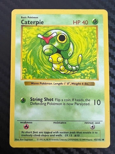 Caterpie Base Set Shadowless 1st Edition Pokemon 45/102 1999 WotC Vintage LP