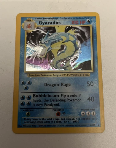 Pokemon Gyarados 6/102 Base Set Holo Foil Rare (HP/DMG)