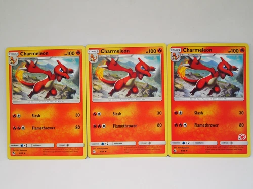 3x Charmeleon 8/68 Pokémon TCG Hidden Fates Regular Uncommon