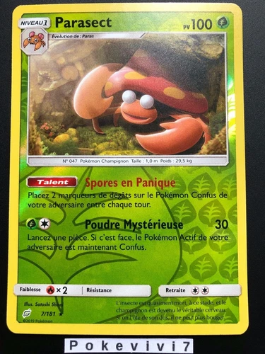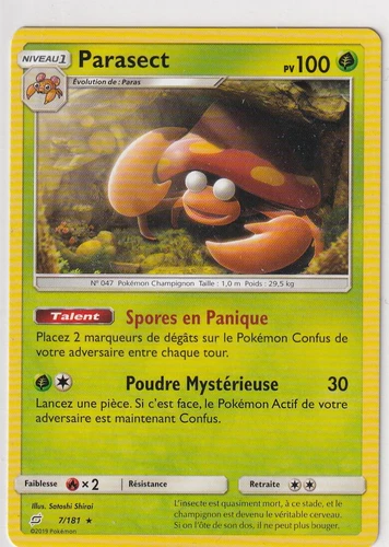 Pokemon Card PARASECT 7/181 RARE Sun & Moon 9 SL9 Duo de Shock FR NEW