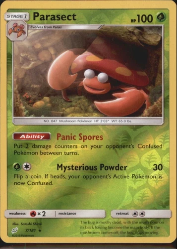 Pokemon TCG Parasect 7/181 Team Up Reverse Holo Rare Card