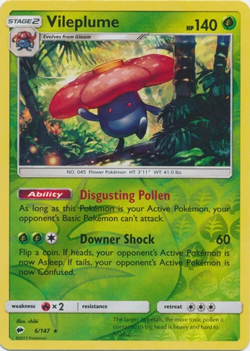 Pokemon TCG Vileplume 6/147 Sm-Burning Shadows Reverse Holo