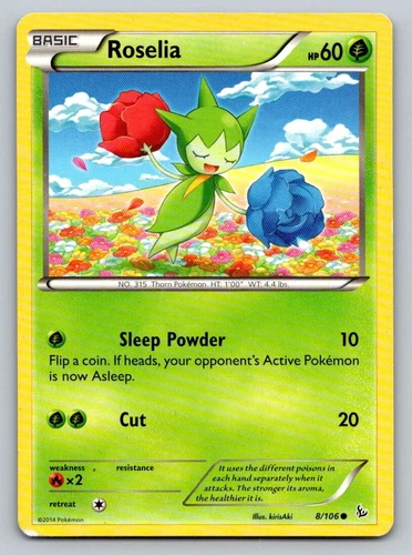 Roselia 8/106 Reverse Holo Common XY Flashfire Pokemon Card Near Mint NM