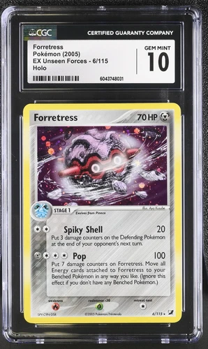 TOP POP 2) Pokemon EX Unseen Forces CGC 10 GEM MINT Forretress 6/115 ERROR HOLO